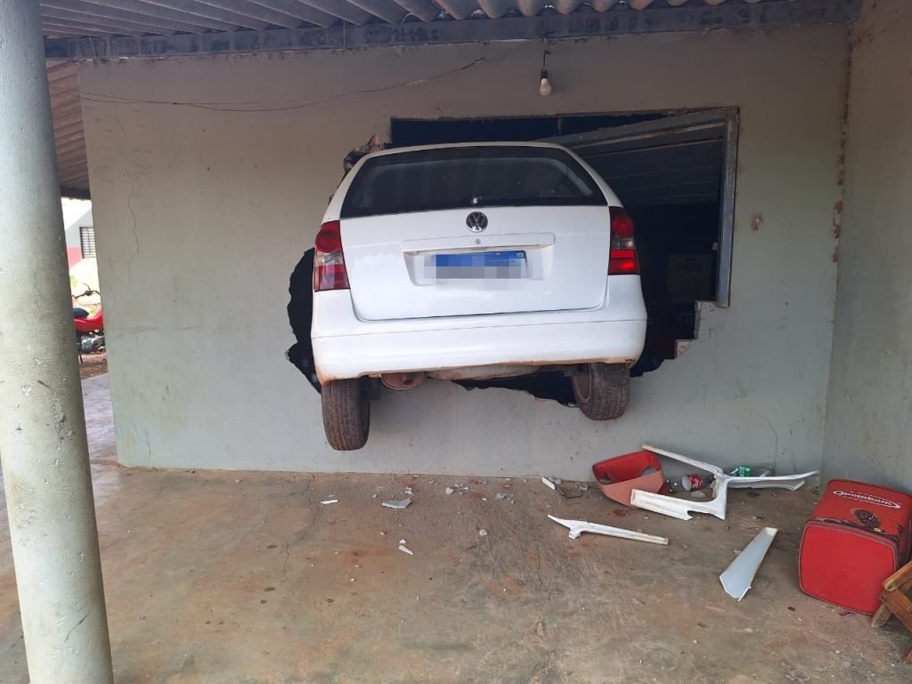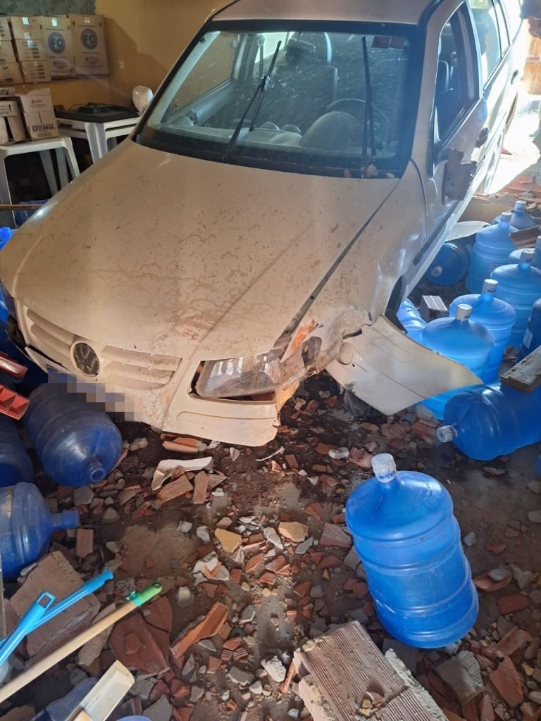 Um veículo ficou preso na parede após invadir um estabelecimento comercial na localidade Fazenda do Meio, zona rural de Parnaguá, por volta das 14h de domingo (8).