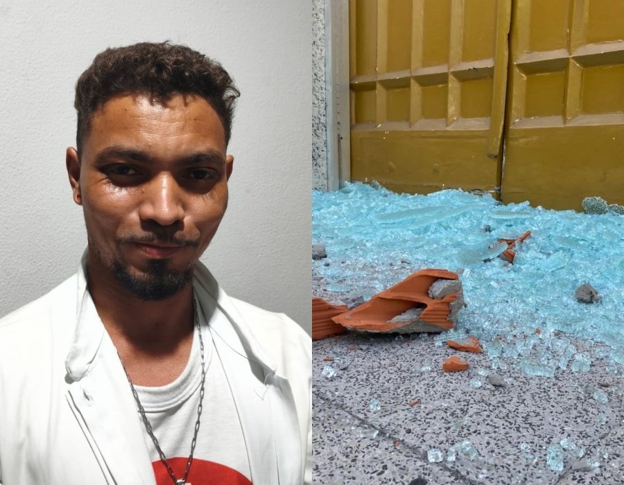 Segundo o delegado Sérgio Alencar, da 1ª Delegacia Seccional, Alex foi identificado como o homem que depredou três portas de vidro da entrada principal da Catedral durante a tentativa de arrombamento.
