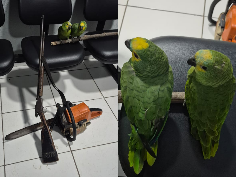 Um homem foi preso em flagrante, na quarta-feira (10), por porte ilegal de arma de fogo, em uma área de preservação na zona rural de Bom Jesus (PI). Com ele, também foi encontrado dois papagaios com as asas cortadas e uma motosserra usada para derrubar vegetação.