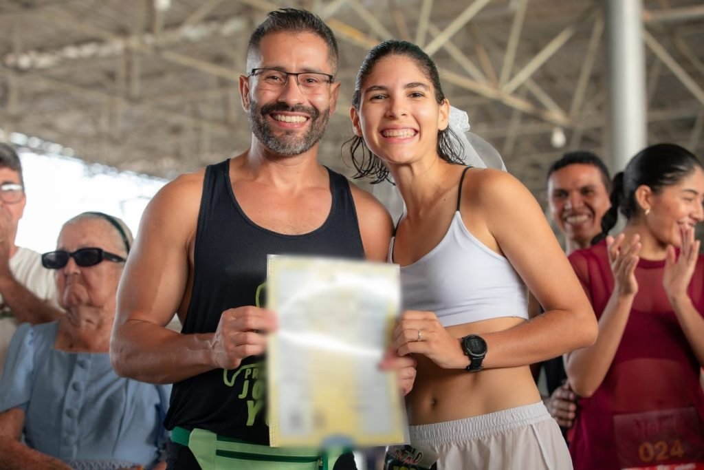 O amor e a paixão pela corrida se encontraram em um momento único neste sábado (13) em Teresina (PI). Ao final de uma prova, um casal surpreendeu os participantes e selou a união com um casamento cheio de emoção e adrenalina, na companhia de familiares e amigos.