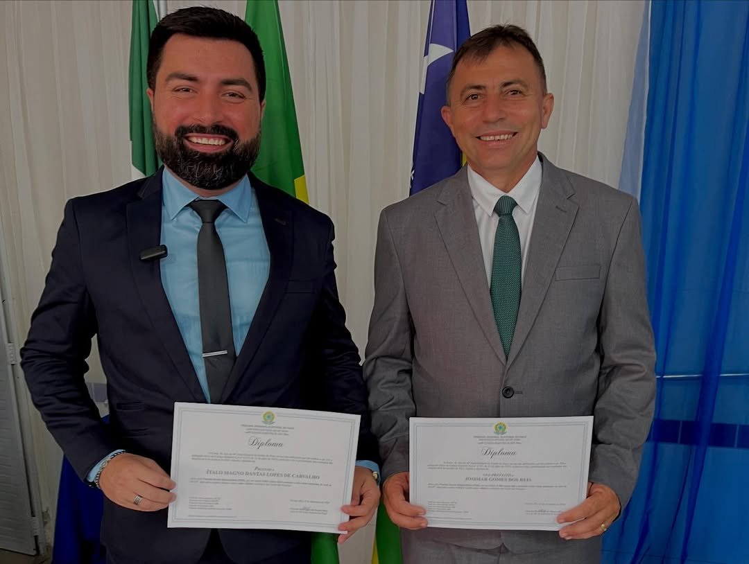 Prefeito Ítalo Magno Dantas Lopes de Carvalho (PSD) e vice-prefeito, Josimar Gomes dos Reis (Foto: Reprodução)