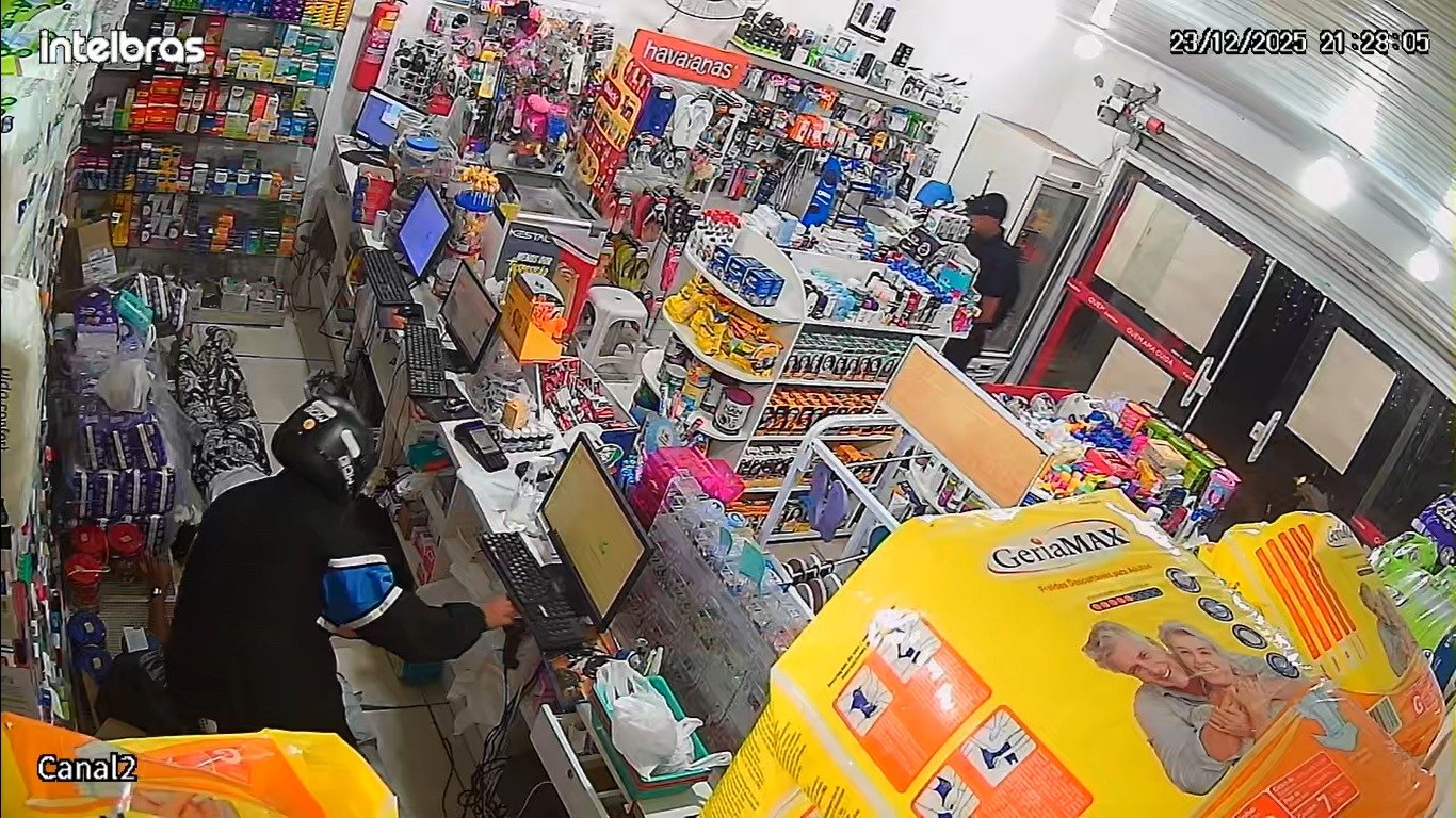 Pelas imagens das câmeras de segurança, é possível ver que pelo menos três homens participaram do crime. Os assaltantes entraram pela porta da frente do estabelecimento apontando armas aos funcionários que estavam no balcão. Após a ameaça, os colaboradores deitam no chão.