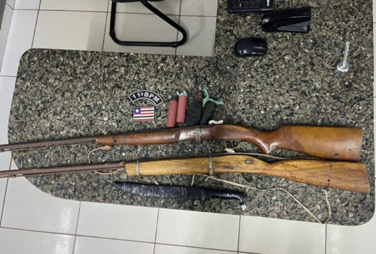Ao chegar no local, os policiais constataram que o homem havia fugido do local com duas espingardas de fabricação artesanal.