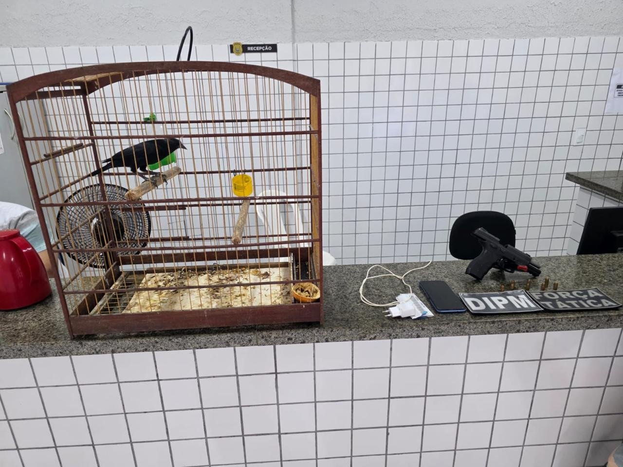 O conduzido afirmou que mantinha a arma para “proteção pessoal”. Durante as buscas, a PM apreendeu um pássaro silvestre da espécie conhecida como Chico-preto, configurando crime ambiental.