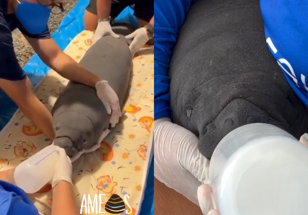 Inicialmente, o peixe-boi chegou a ser devolvido ao mar por pessoas que estavam na praia, mas acabou encalhando novamente, sendo encontrado debilitado em uma área rochosa.
