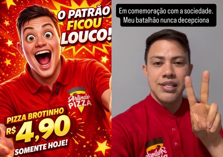 O policial militar e dono da rede Arlindo Pizzas, em Teresina, anunciou uma promoção de pizza brotinho a partir de R$ 4,90 após a morte de dois homens durante uma troca de tiros com a Polícia Militar do Maranhão, em Timon, na tarde dessa quinta-feira (22).