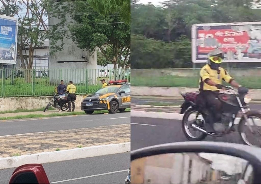 Imagens que circulam nas redes sociais mostram um adolescente, que trabalhava como entregador de delivery, tendo a motocicleta apreendida por agentes da Superintendência Municipal de Transportes e Trânsito (Strans) na Zona Norte de Teresina. O caso ocorreu na quinta-feira (29) e o veículo apresentava irregularidades como pneus carecas, ausência de retrovisores e uso de escapamento do tipo Kadron.