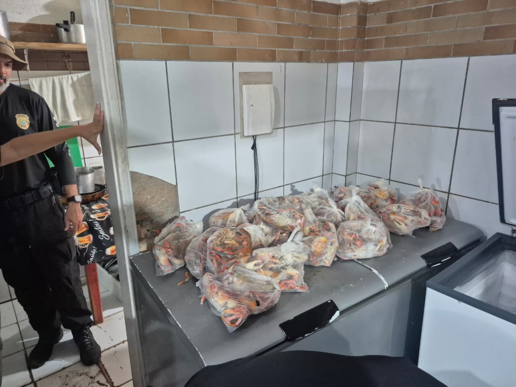 Uma equipe de fiscalização apreendeu cerca de 30 quilos de caranguejo-uçá armazenados em uma barraca de praia em Luís Correia, no Litoral do Piauí, na manhã desta quarta-feira (4). A comercialização e o armazenamento do animal estão proibidos devido ao período do defeso.O responsável pelo estabelecimento foi autuado e recebeu multa.