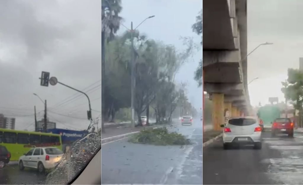 Teresina registrou um forte temporal na tarde desta quinta-feira (5), o que resultou em transtornos e congestionamentos em diversas zonas da capital. Imagens enviadas ao Portal ClubeNews mostram a queda de galhos em vias públicas, semáforos inoperantes e vários pontos de alagamento. A chuva também foi marcada por incidência de raios e trovões.