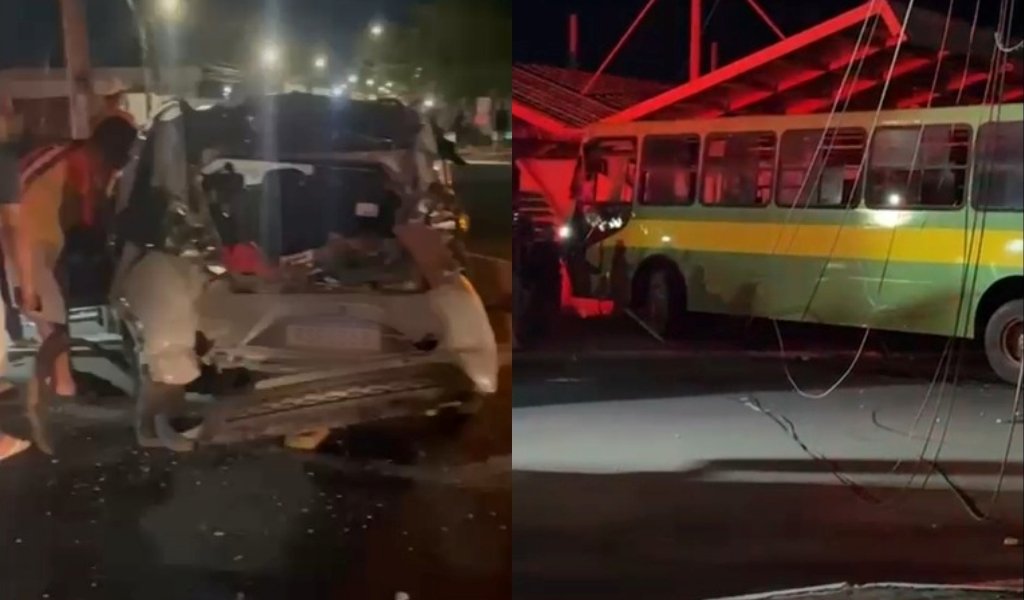 Um ônibus desgovernado atingiu um carro que estava parado no semáforo de um cruzamento da Avenida Duque de Caxias, na zona Norte de Teresina (PI), na noite dessa sexta-feira (13). O coletivo invadiu o Terminal do Buenos Aires e puxou a fiação, deixando a região sem energia elétrica.