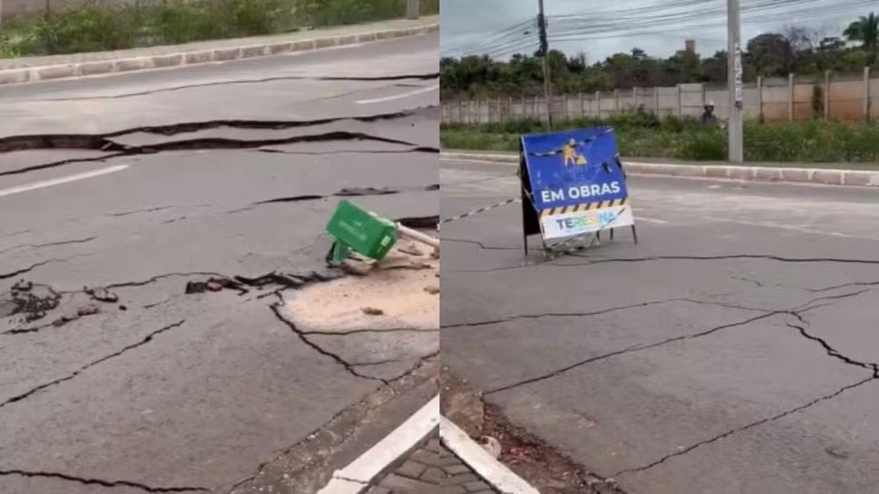 Um trecho da Avenida Francisco Soares Campelo, no bairro Vale do Gavião, zona Leste de Teresina, precisou ser interditado após o asfalto ceder e apresentar rachaduras visíveis. O bloqueio foi feito ainda no domingo (15), segundo a Superintendência de Desenvolvimento Urbano (SDU) Leste, e não há previsão de liberação.