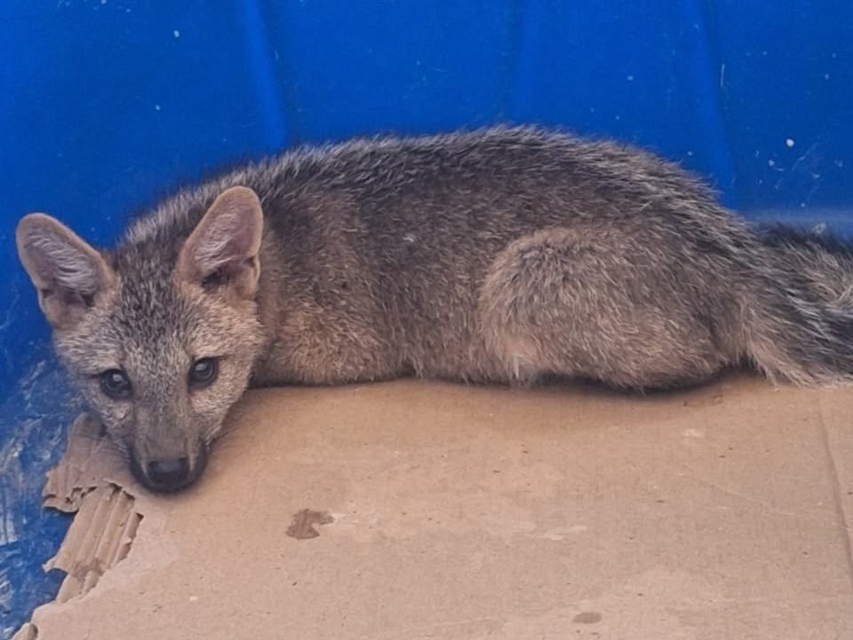 Um filhote de raposa foi resgatado, no povoado Alegre da Ema, zona rural de Caxingó, na segunda-feira (23), após buscar abrigo na residência de uma família.