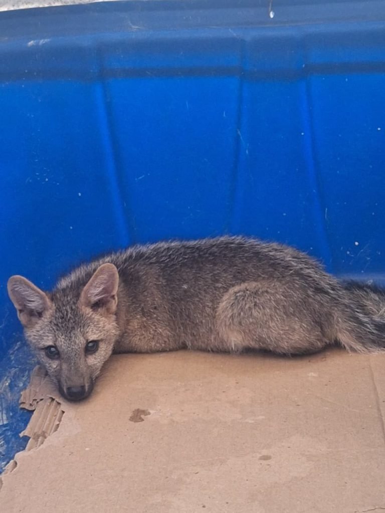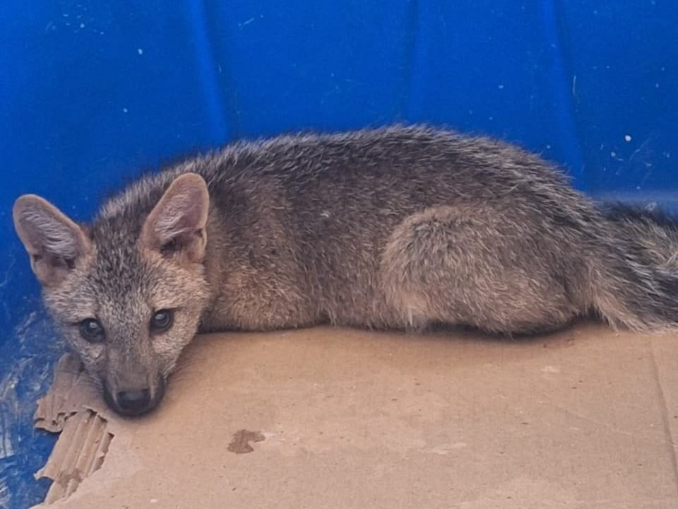 Um filhote de raposa foi resgatado, no povoado Alegre da Ema, zona rural de Caxingó, na segunda-feira (23), após buscar abrigo na residência de uma família.