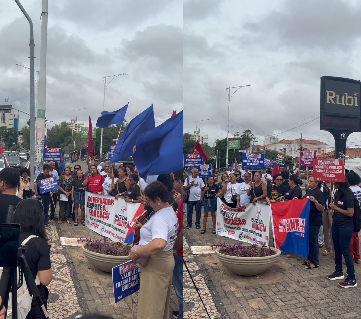 Professores e profissionais de educação da rede estadual protestaram na manhã desta sexta-feira (27) na Avenida Frei Serafim, Centro de Teresina. Eles cobraram o cumprimento do piso salarial pelo governo do estado.