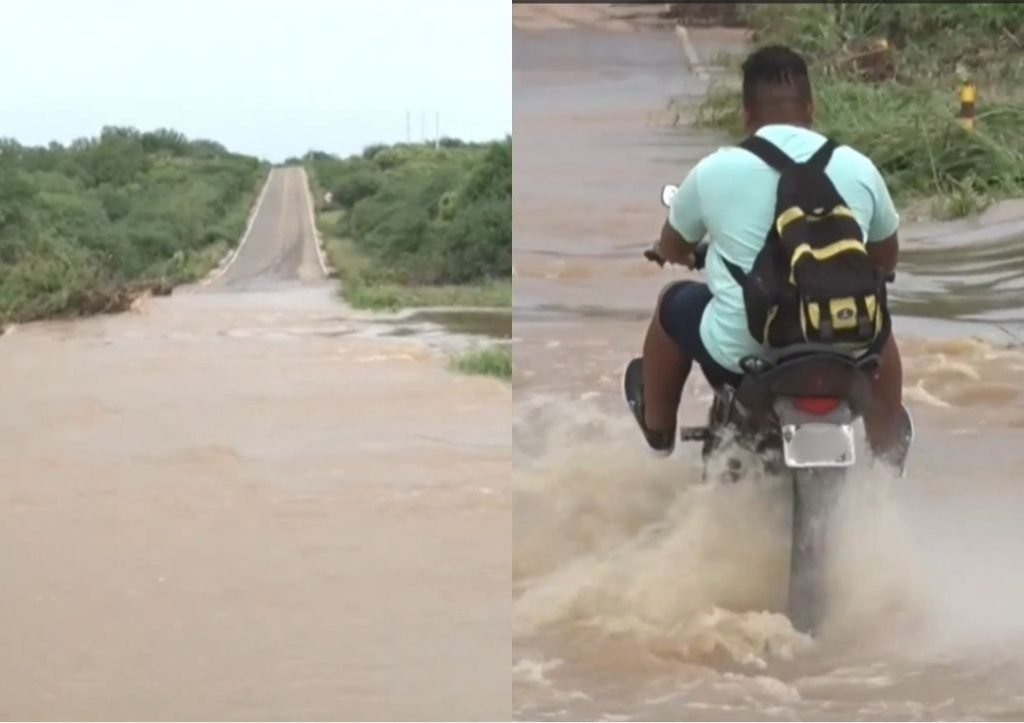 Um trecho da rodovia PI-459, que liga o município de Betânia do Piauí a Paulistana, ficou coberto por água após o rompimento de parte da Barragem Nova Esperança. O caso foi registrado depois das fortes chuvas que caíram entre sexta-feira (27) e domingo (1º).