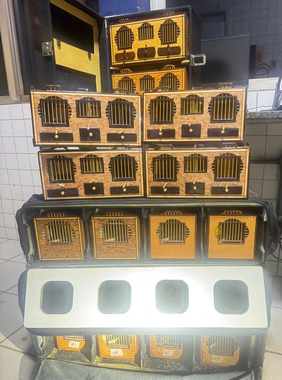 A apreensão aconteceu após abordagem da PRF a um veículo de passeio. Durante a inspeção no automóvel, os policiais encontraram diversas gaiolas de pequeno porte no banco traseiro.