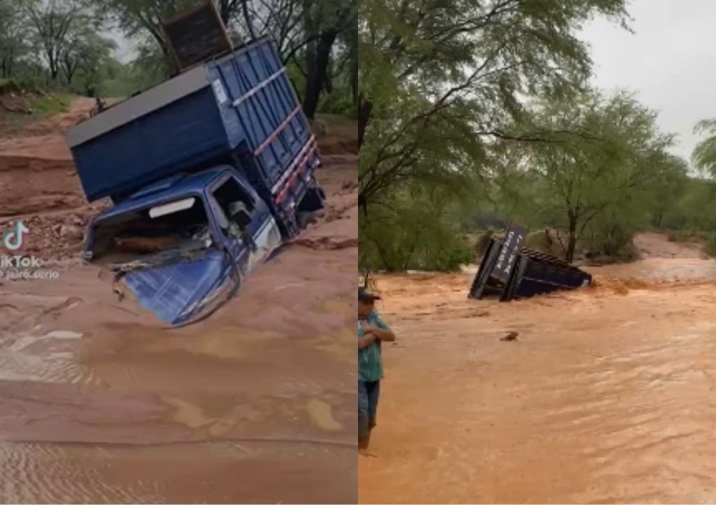 Uma caminhonete ficou atolada na lama e, logo em seguida, arrastada após fortes chuvas no sábado (28), em Simões (PI), município localizado a cerca de 362 km de distância de Teresina (PI). O veículo foi arrastado pela água e ficou submerso por várias horas. A caminhonete só foi retirada no domingo (1º), com o auxílio de três máquinas.