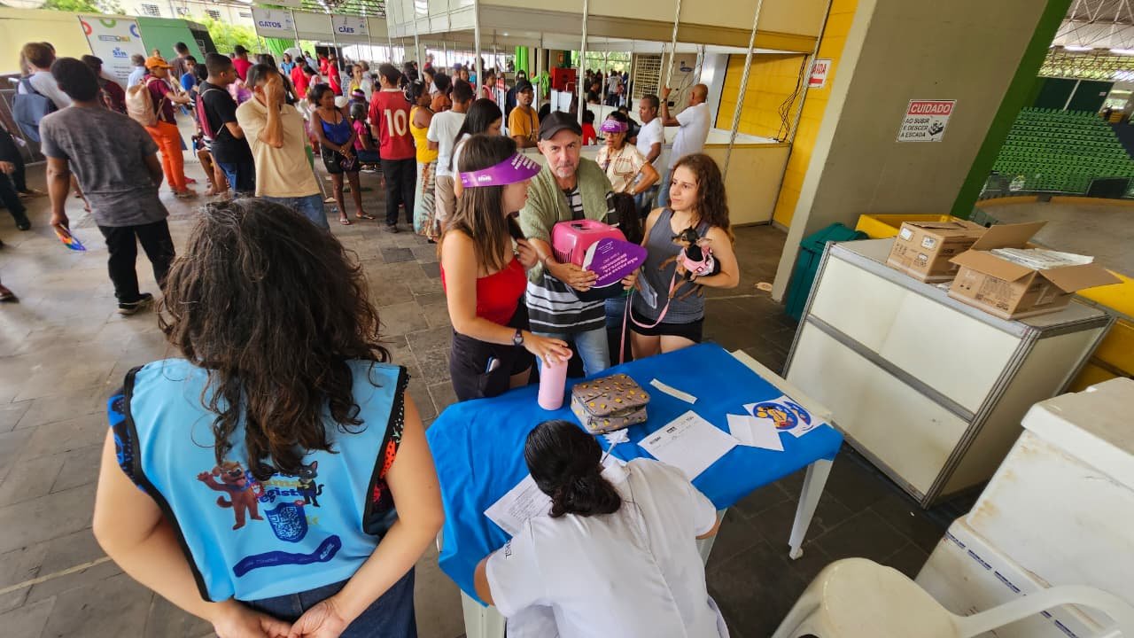 O evento é aberto ao público em geral e não há necessidade de agendamento prévio. A Geovana de Oliveira Amaral, de 20 anos, aproveitou a oportunidade para vacinar seus animais de estimação.