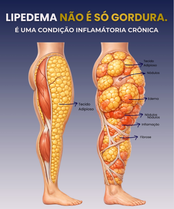O lipedema pode causar um impacto psicológico significativo e, muitas vezes, é confundido com obesidade ou linfedema.