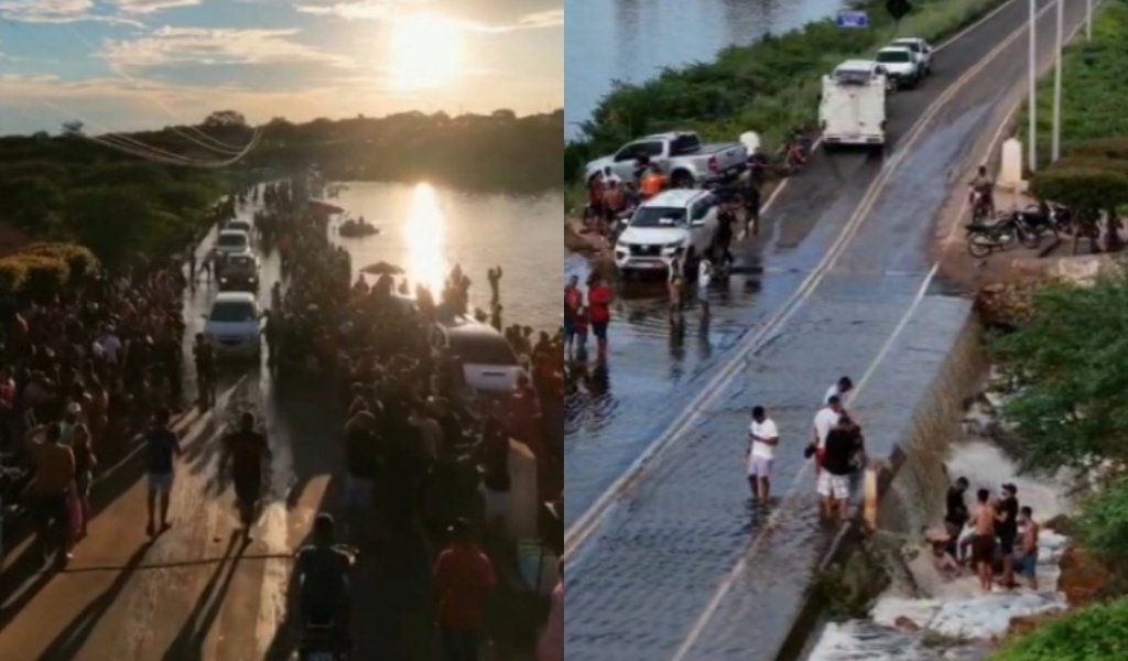 O transbordamento de uma barragem na PI-243, entre os municípios de Belém do Piauí e Padre Marcos (PI), acabou transformando o trecho em um ponto de lazer improvisado para moradores da região. Um vídeo que circula nas redes sociais desde domingo (15) mostra a movimentação no local.