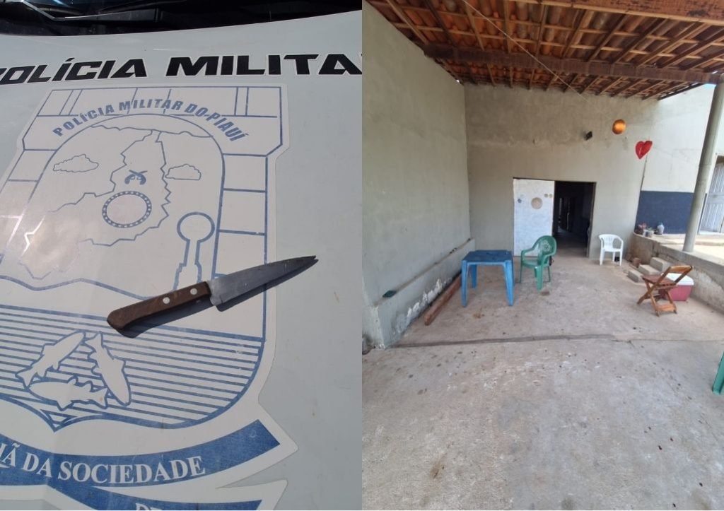 Arma usada no crime e local onde vítima foi esfaqueada (Foto: PM-PI)