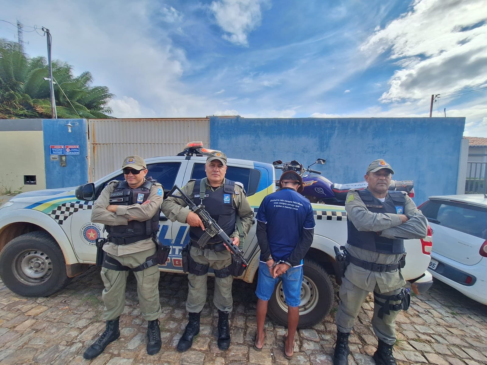 Ainda segundo a PM, o suspeito fugiu do local em uma motocicleta e seguiu em direção à localidade Bandeira, na zona rural. Os policiais iniciaram diligências e conseguiram localizar o homem escondido na casa dos pais.