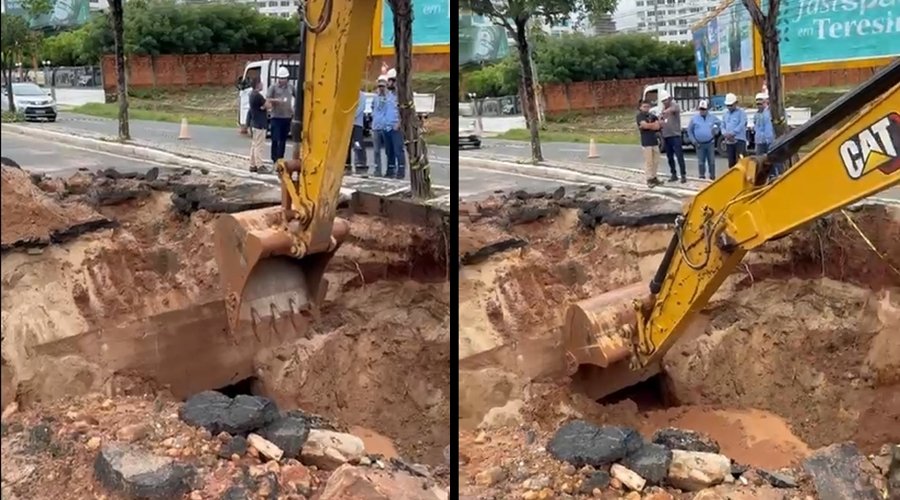 Cratera surge na Avenida Jóquei Clube e trecho é interditado para obras em Teresina