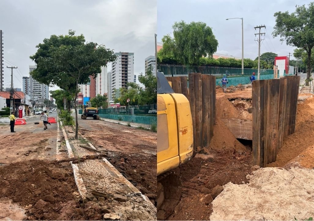 O trecho precisou ser interditado após a abertura de uma cratera na última quarta-feira (18). Segundo o gerente de obras da SDU Leste, Ítamo Miguel, o problema foi causado por uma falha no sistema de drenagem.