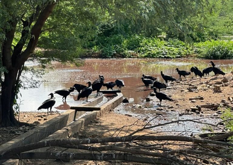 Fotos tiradas durante uma inspeção mostra o local repleto de urubus.