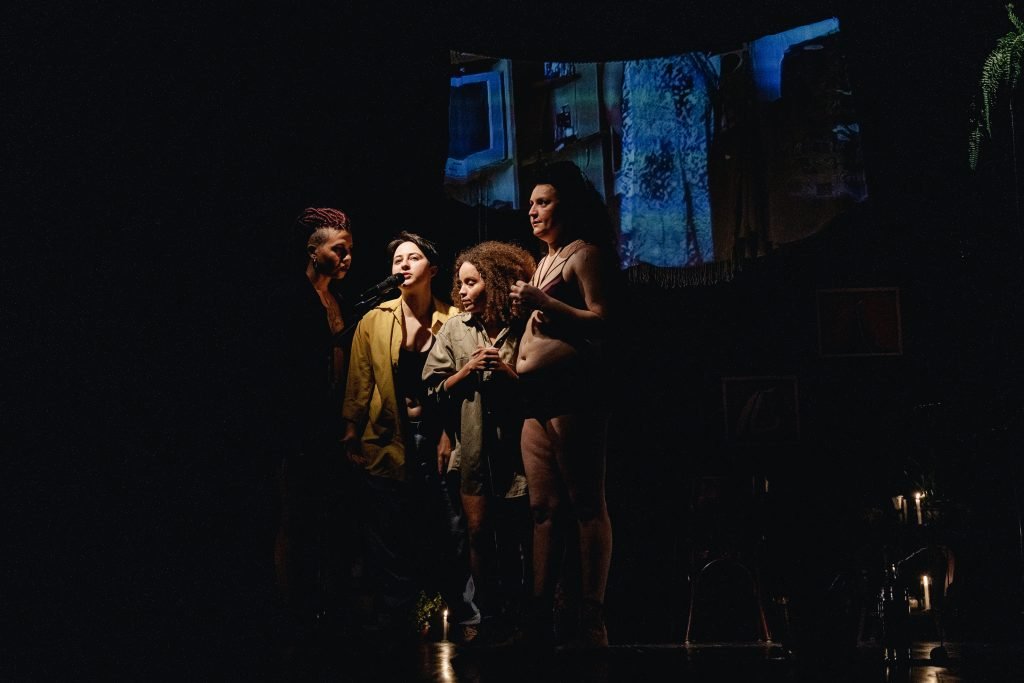Em cena, Aila Beatriz, Luênia Guedes, Maria Victória Carballar e Lu Matias habitam uma casa feita de lembranças, objetos e encontros. Projeções, vídeos e imagens de outras intérpretes que passaram pelo espetáculo ao longo dos anos também aparecem na dramaturgia, criando um diálogo entre presença e memória, entre o que já foi vivido e o que ainda se transforma diante do público.