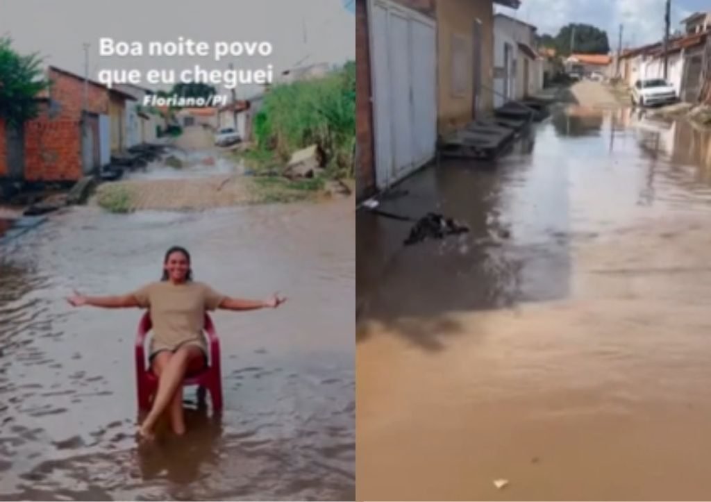 A produtora cultural Anizia Carvalho, natural de Floriano, no Sul do Piauí, decidiu usar uma das trends mais populares do momento, o vídeo com drone ao som de “Baianá”, música que viralizou nas redes sociais, para denunciar um problema que, segundo ela, “vira rotina” na cidade: o alagamento da Rua Robert Tilotson, no bairro Manguinha.