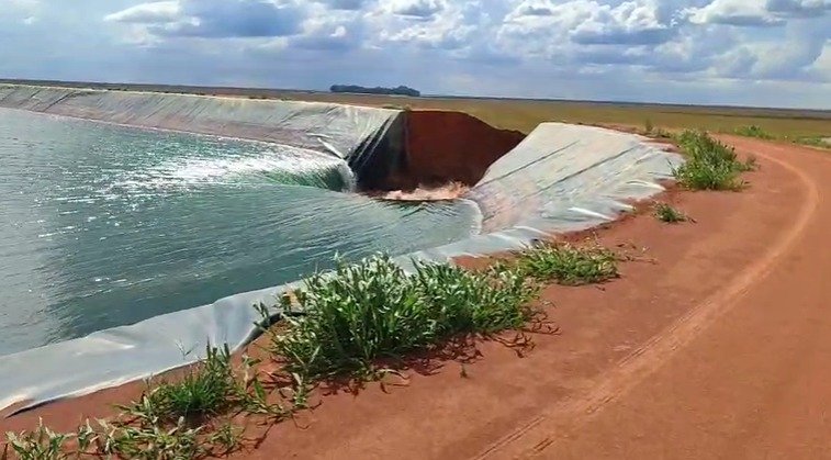Um reservatório localizado na Fazenda Ribeirão, na zona rural de Baixa Grande do Ribeiro, rompeu e atingiu parte de uma plantação de soja da propriedade. O caso aconteceu na sexta-feira (27) e, até o momento, não há registro de pessoas feridas.