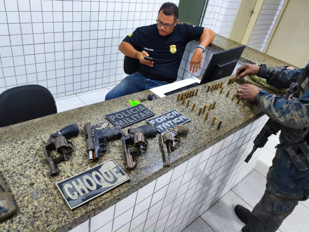 Munições e quatro armas de fogos foram encontrados com os suspeitos. Todo o material foi apreendido.