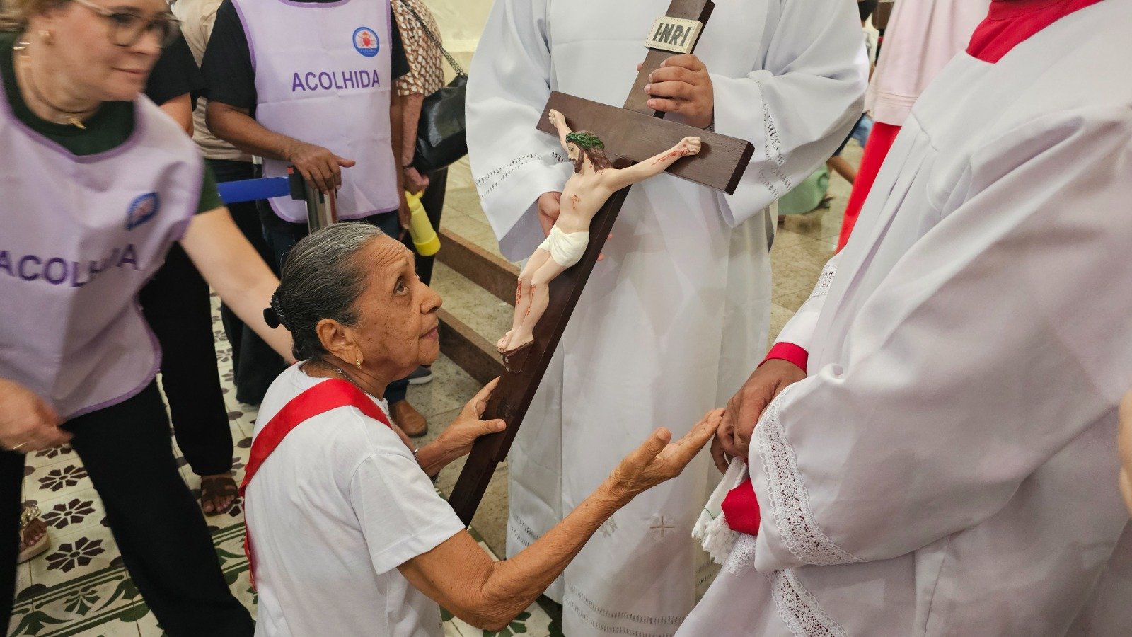 Antes do evento, às 15h, o arcebispo metropolitano Dom Juarez Marques presidiu a celebração da palavra na parte interna da catedral. Durante a solenidade, os fiéis participaram da adoração à santa cruz.