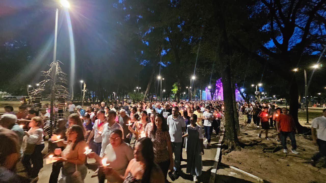 A aposentada, Beatriz Rodrigues Farias, tem 81 anos e não escondeu a emoção de participar do evento. Para ela, o momento representa profundo respeito à doação de Jesus pela salvação da humanidade.