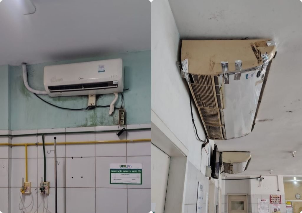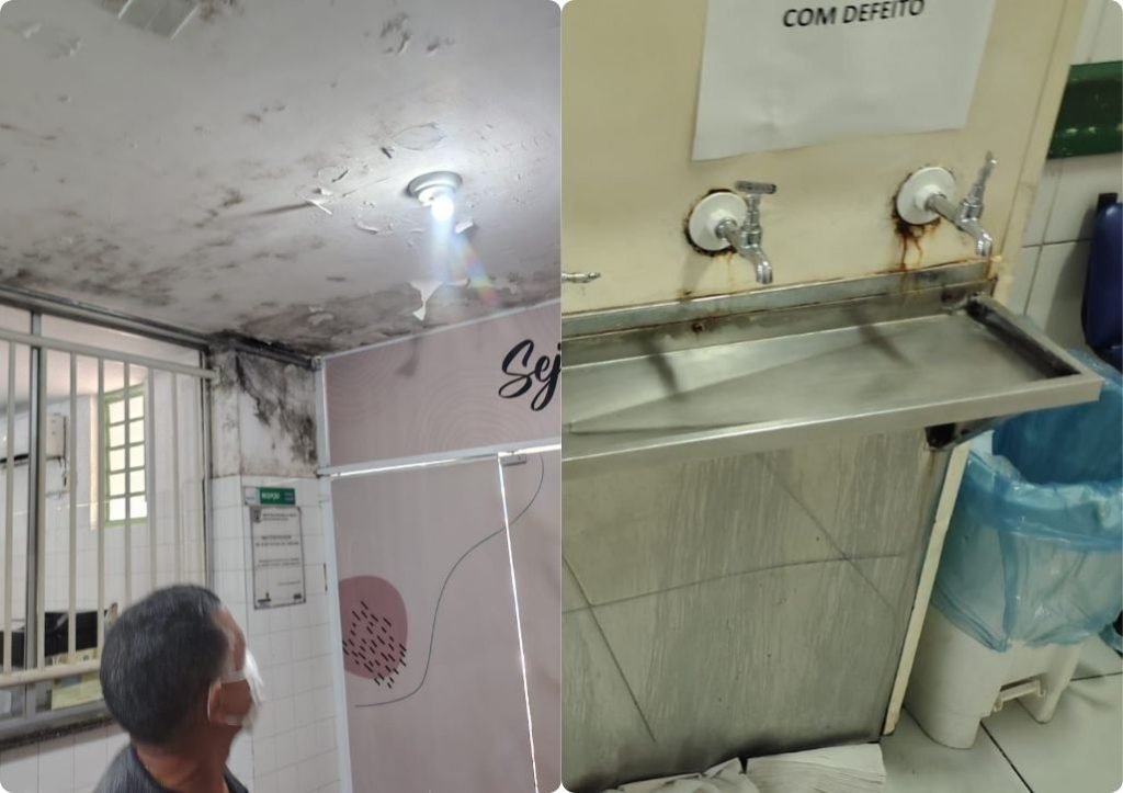 Entre as irregularidades estruturais e de acessibilidade estão: ar-condicionado funcionando de forma precária, fiação exposta e, em muitos casos, equipamentos que não funcionam; além de estofados de cadeiras e macas rasgados, bebedouros com defeito, sanitários e pias interditados e tetos com infiltrações e mofo.
