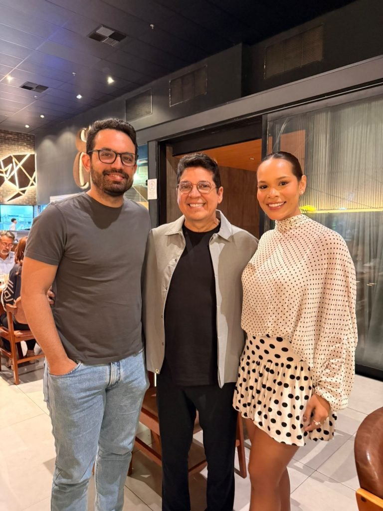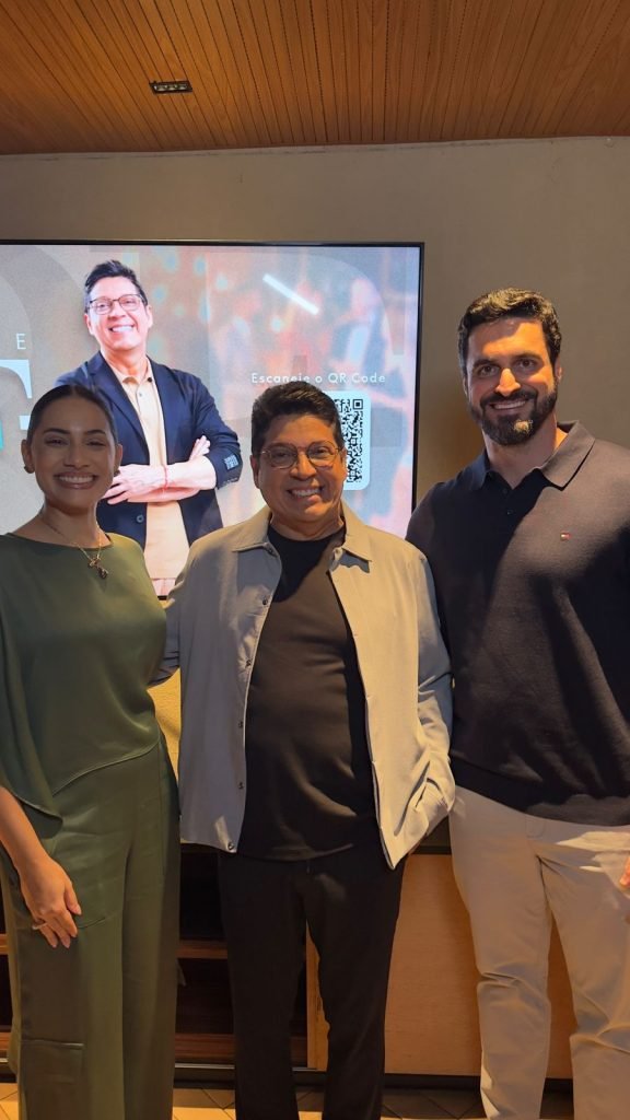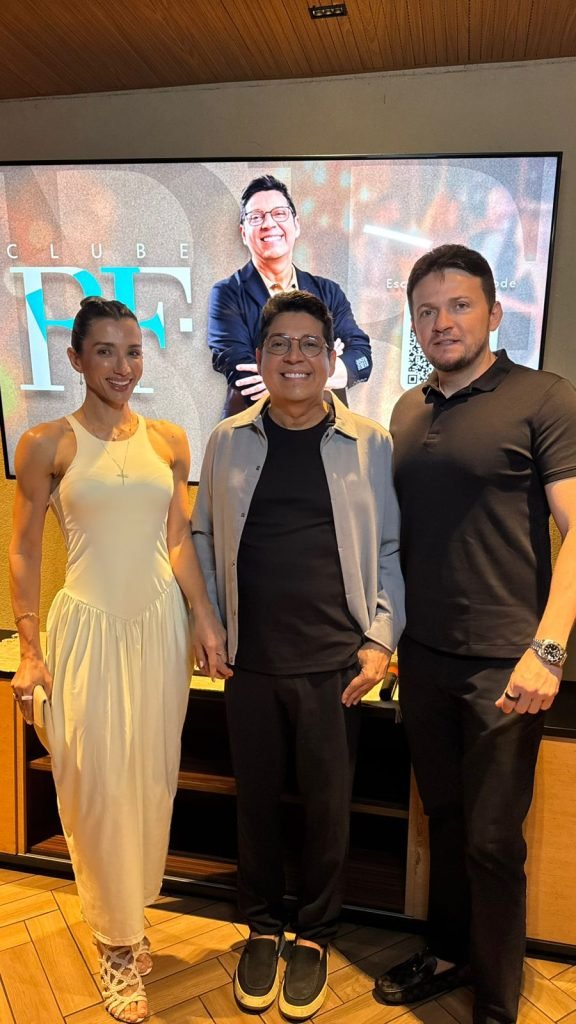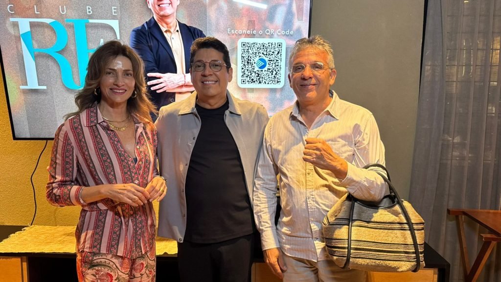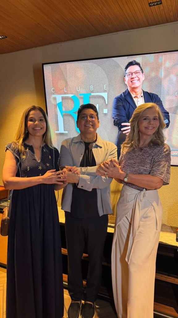 O jornalista ladeado pelas acionistas Alessandra Alencar e Márcia Rebelo (Crédito: Portal ClubeNews)