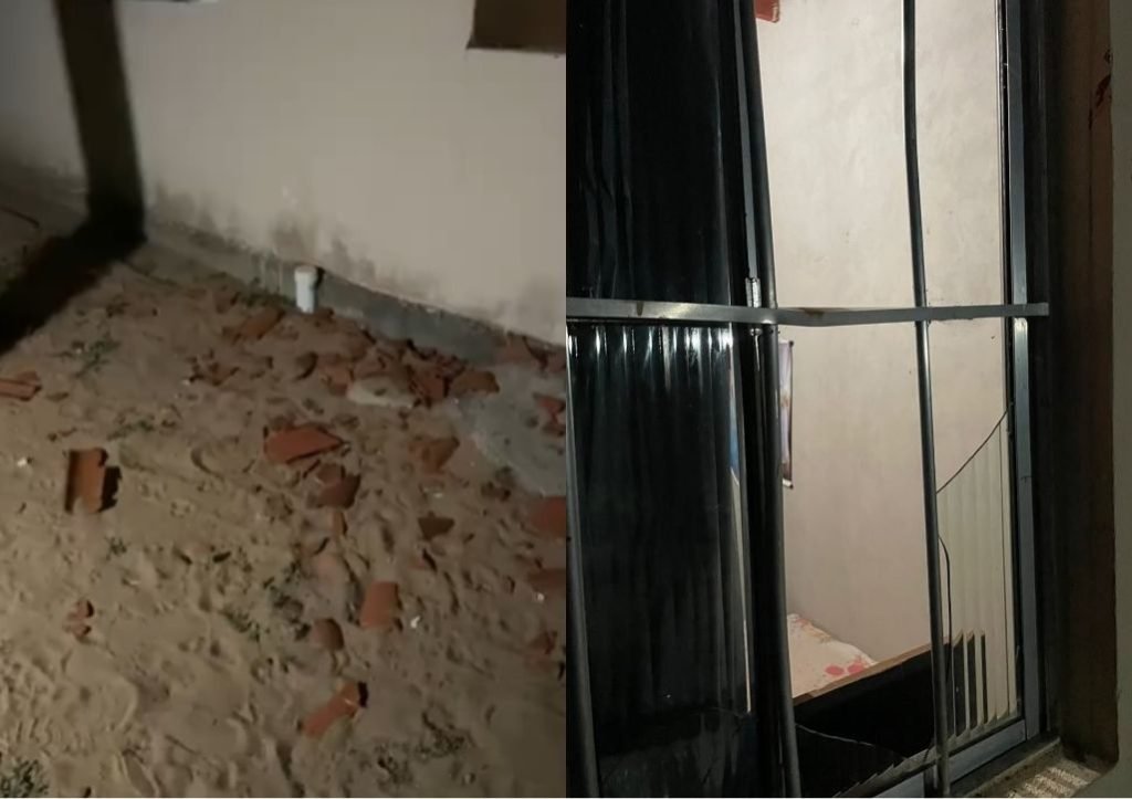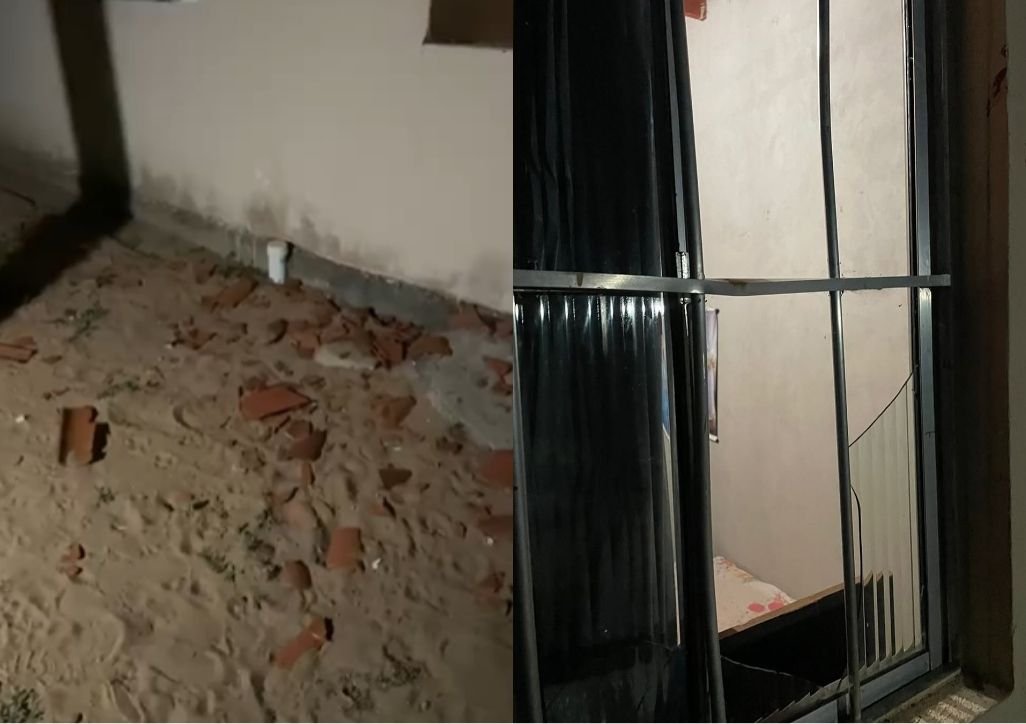 A residência teve parte do telhado destruída e vidros quebrados. O caso será investigado pela Polícia Civil.