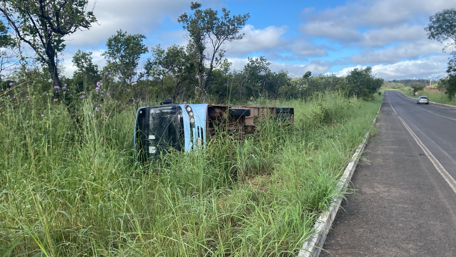 De acordo com o motorista, o acidente aconteceu por volta das 7h, após ele ouvir um estralo, semelhante a uma possível falha mecânica. Em seguida, o condutor perdeu o controle da direção, e o ônibus acabou tombando à margem da rodovia.